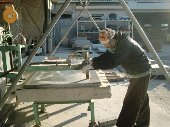 大正時代に建てられた石塔が並ぶお墓をリフォームしました。新しくなったお墓は、真壁石(小目)を小叩きにて仕上げた古代型の五輪塔で、それまでの石塔も耐震を施した上で、後部に並べて設置しています。 |